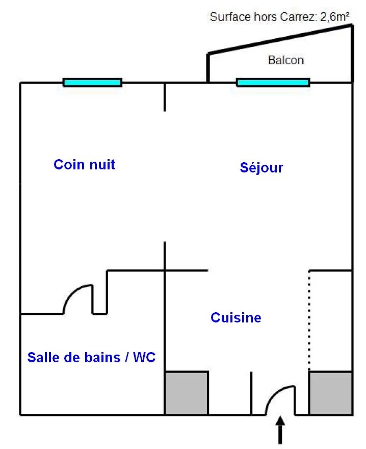 Dans une résidence récente avec piscine sur le toit, en avant-dernier étage, appartement type F1 transformable facilement en 2 pièces comprenant cuisine aménagée, pièce de vie sur balcon avec vue dégagée, coin nuit, salle d'eau avec wc.