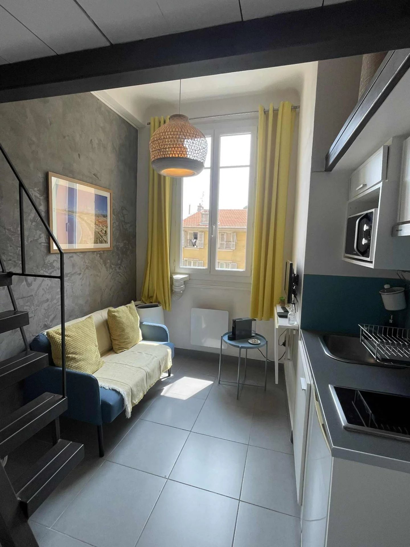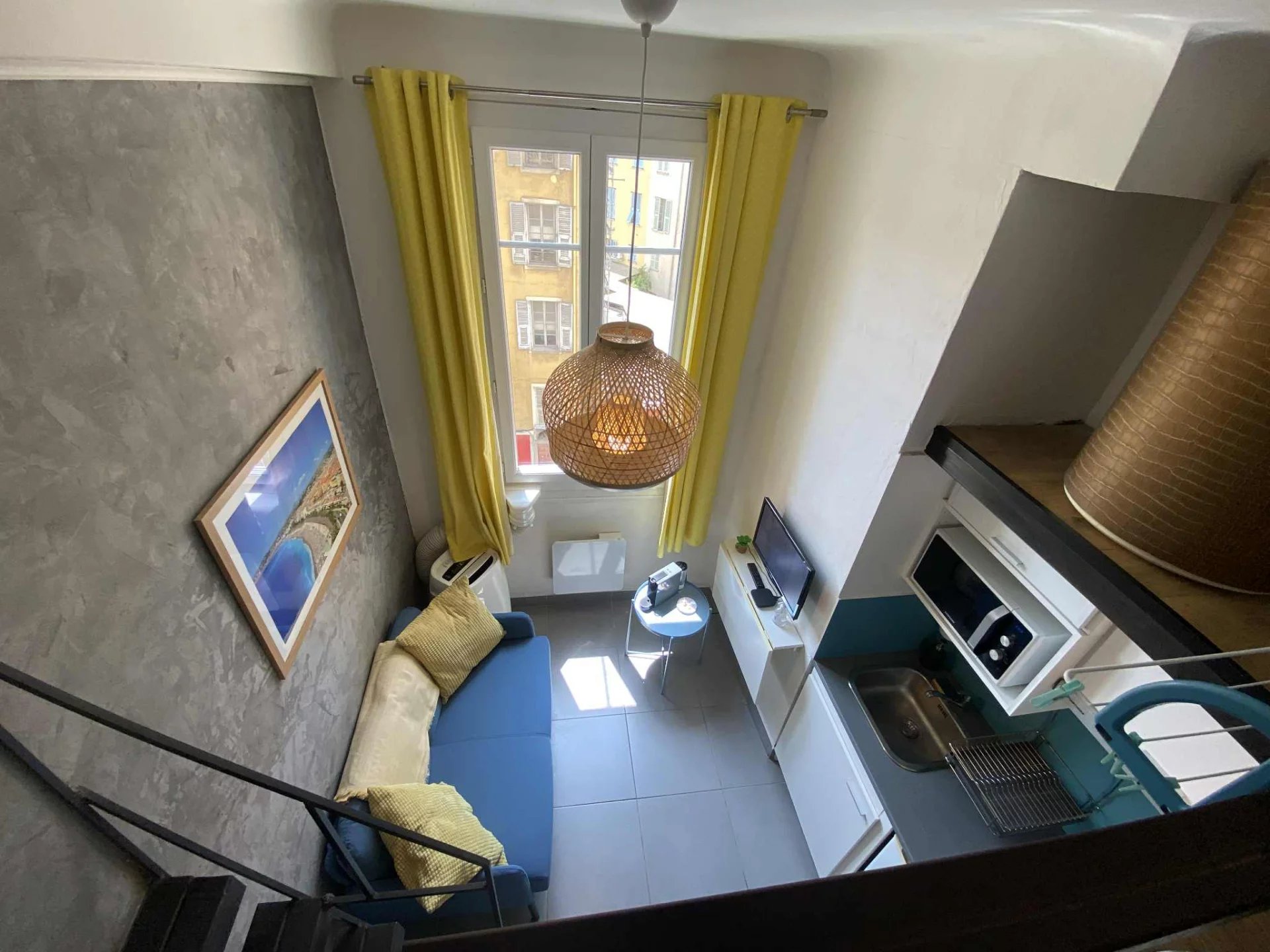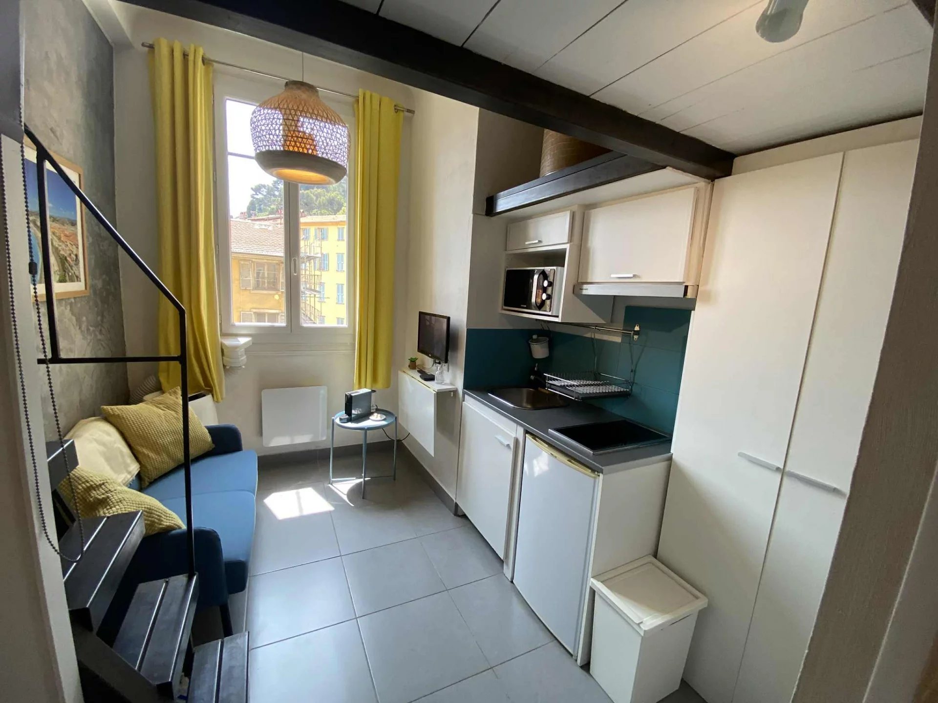 Rue Antoine Gautier : dans immeuble avec ascenseur, en étage élevé, exposition sud sur la colline du Château, agréable studette 10,50m² carrez + mezzanine 4m², belle hauteur sous plafond, le tout en très bon état et fonctionnel.